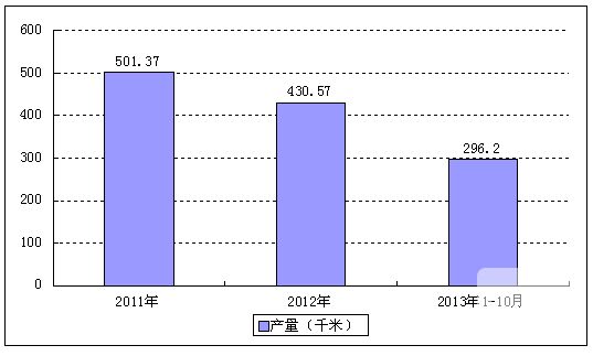 2011-2013年10月广东省水泥混凝土排水管产量数据统计图例