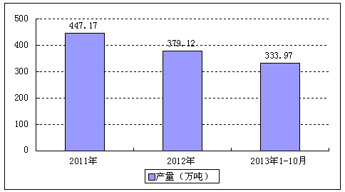 2011-2013年10月上海市中厚宽钢带产量统计图例