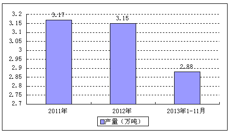 2013年1-11月,北京市共生产无纺布(无纺织物)2.88万吨,同比减少4.17%。