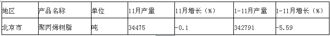 2013年1-11月北京市聚丙烯树脂产量分析