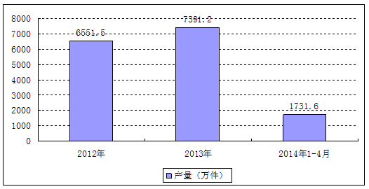 2014年1-4月江西省羽绒服装产量分析