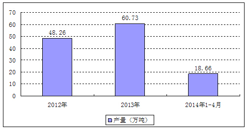 统计数据显示:2014年1-4月广东省纯碱产量为186651吨,同比下降6.01%。