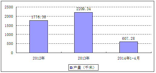 2014年1-4月陕西省水泥混凝土排水管产量统计