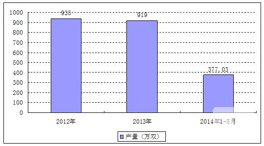 2012-2014年天津市皮革鞋靴产量统计分析