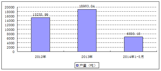 2012-2014年5月广西锑品产量统计
