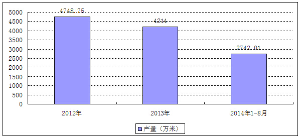 统计数据显示:2014年8月份,天津市生产色织布318.80 万米;2014年1-8月,天津市生产色织布2742.01 万米,同比下降4.17 %。