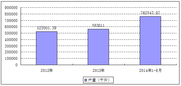 统计数据显示:2014年8月份,黑龙江省生产发酵酒精108145.22 千升;2014年1-8月,黑龙江省生产发酵酒精762542.07 千升,同比增长1.22 %。