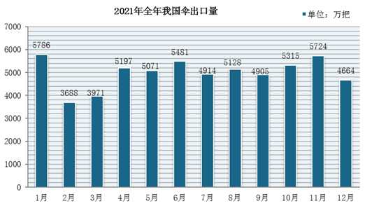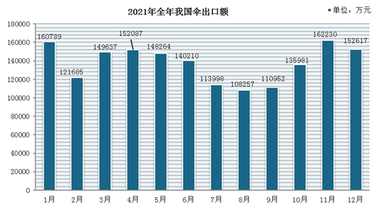 2021年全年我国伞出口额(单位:万元)
