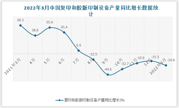 2022年3月中国复印和胶板印制设备产量同比增长数据统计