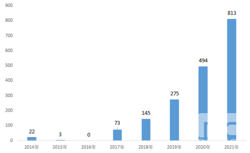 图表 2014-2021年我国煤矿智能化采掘工作面数量变化