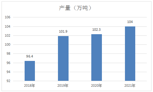 2021年为“十四五”开局之年,随着新冠肺炎疫情的控制,我国BR需求增速变化较小,顺丁橡胶是仅次于丁苯橡胶的第二大合成橡胶,据统计,2021年我国顺丁橡胶产量为104万吨,同比增长1.6%。