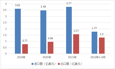 2019-2022年6月我国顺丁橡胶进出口金额统计