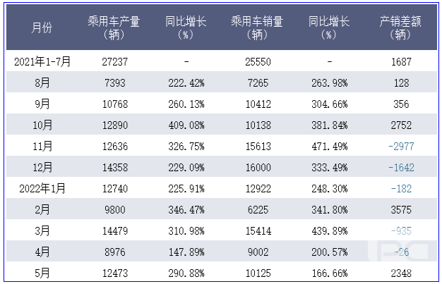2022年6月肇庆小鹏汽车有限公司乘用车产量、销量及产销差额统计分析