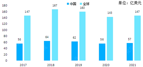 图表 2017-2021年全球及中国功率半导体市场规模
