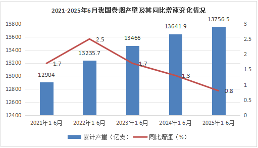 2025年上半年我国卷烟产量创近六年同期新高 约为13756.5亿支 同比增长0.8%