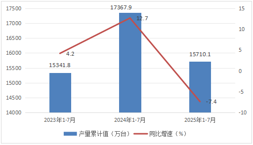 2023-2025年7月我国电工仪器仪表产量累计值及同比增速情况