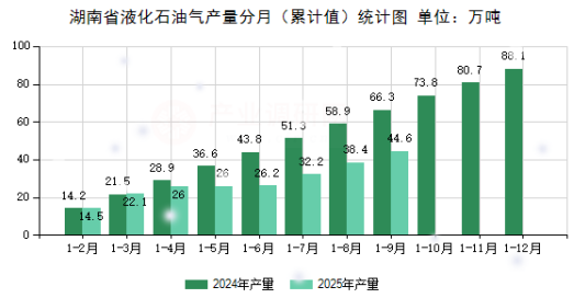 图表:湖南省液化石油气产量分月(累计值)统计图