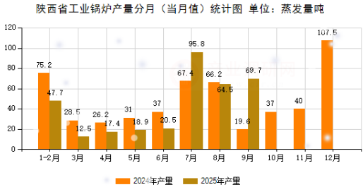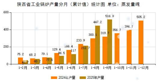 2025年1-9月陕西省工业锅炉产量数据分析