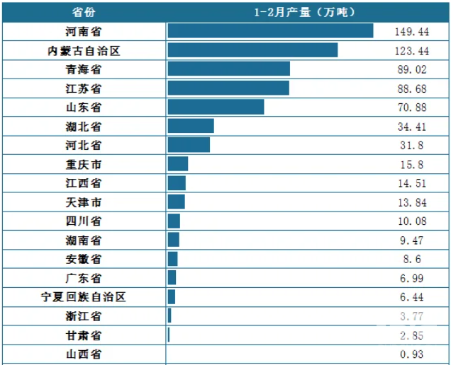 2026年1-2月我国纯碱产量同比增长7.9% 其中河南及内蒙古以超百万吨产量排名前二